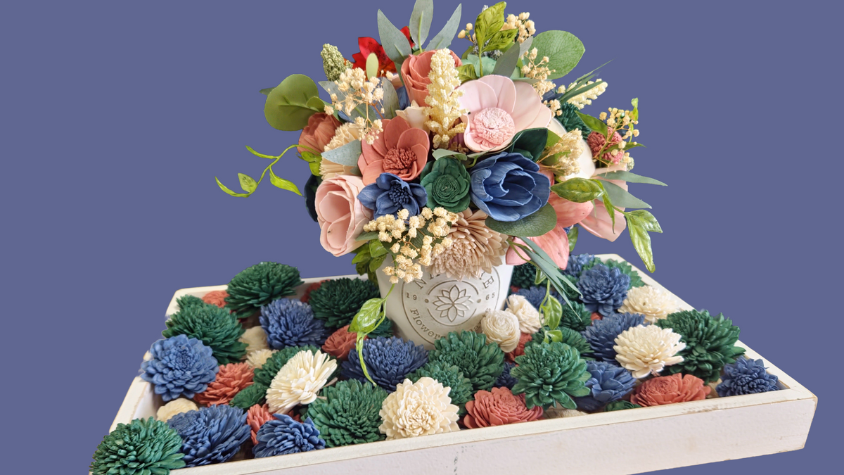 Sola wood flowers are handmade blooms crafted from the soft, natural wood of the tapioca plant (also called shola or aeschynomene). Each petal is carefully shaped from thin, lightweight sheets of this renewable material, giving the flowers a delicate, lifelike look that never wilts.